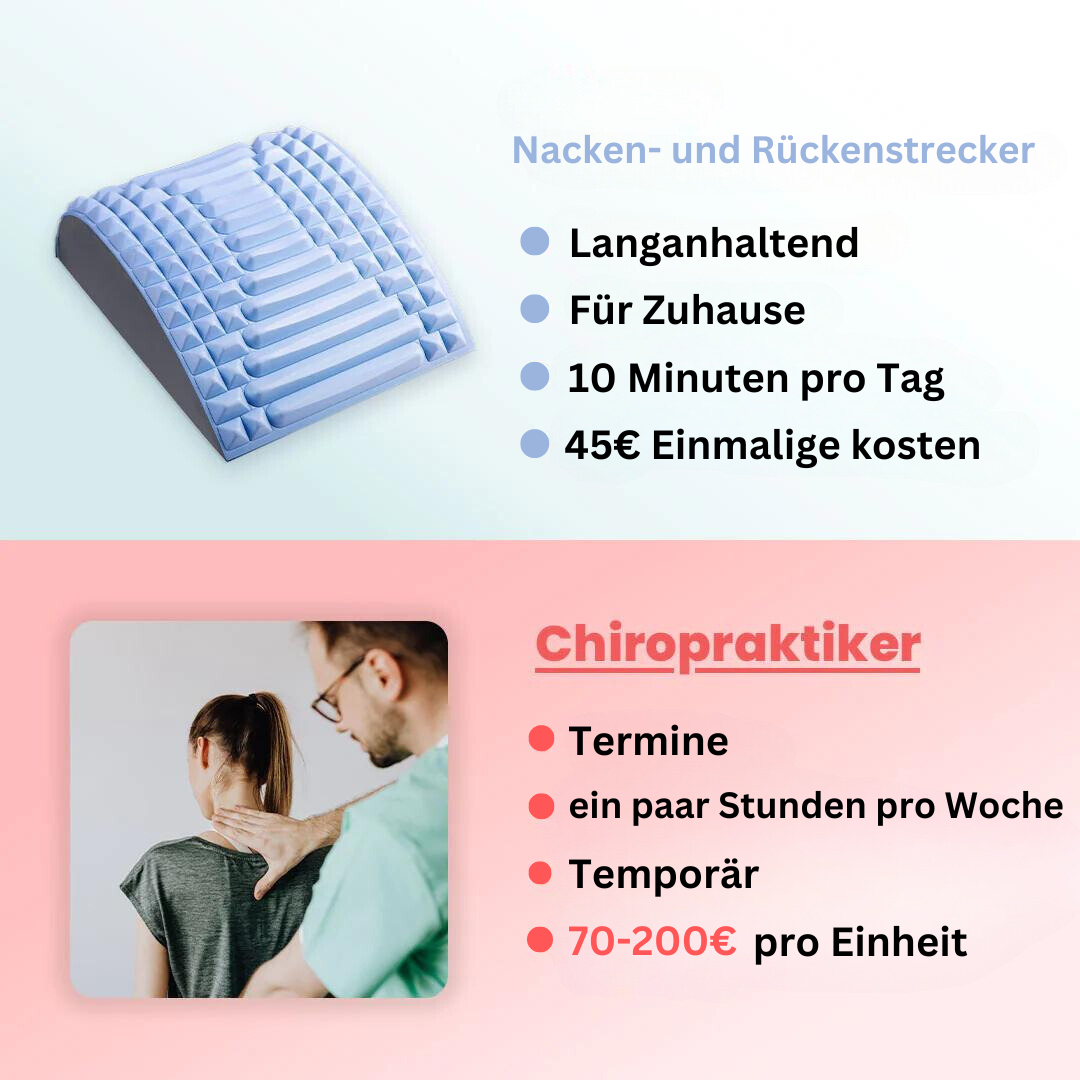 Der Nacken-Rückenstrecker wurde entwickelt, um Deine Wirbelsäule die perfekte Entlastung zu bieten. Täglich nur 10 Minuten investieren um Deine Durchblutung zu fördern, Dein Stresslevel zu senken und um einen besseren Schlaf zu erhalten.